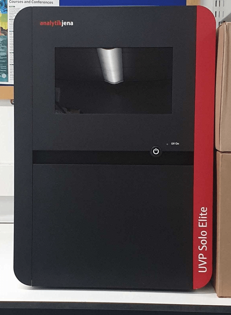 Jena: With nearby labs relocating to give us more space to expand, we found ourselves in need of some equipment of our own. Enter Jena, a streamlined gel doc with a small foot print and a tablet computer-touch screen. Thanks for coming into our #lablives.