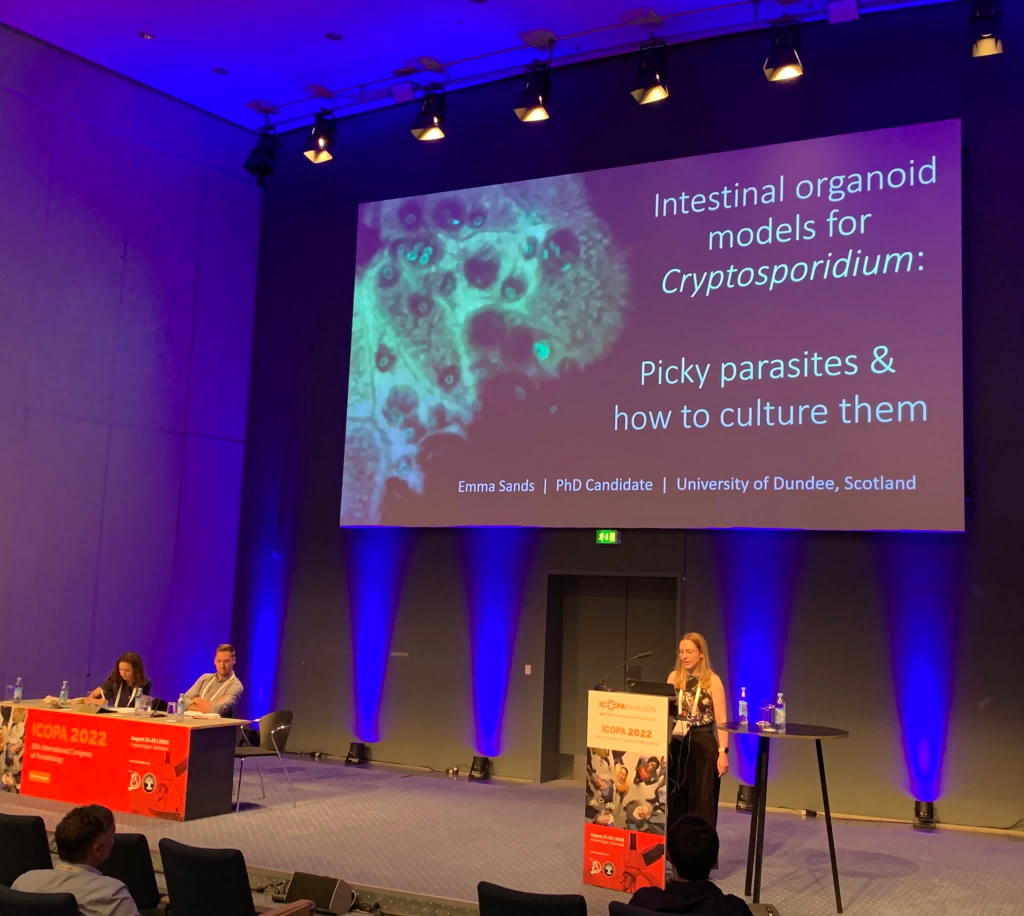 Emma attended ICOPA in Copenhagen where she gave a talk about her work establishing organoid co-culture for Cryptosporidium, and presented a poster on her PhD project. Thanks to David Smith for organising the parasites and organoid panel and inviting Emma to speak!